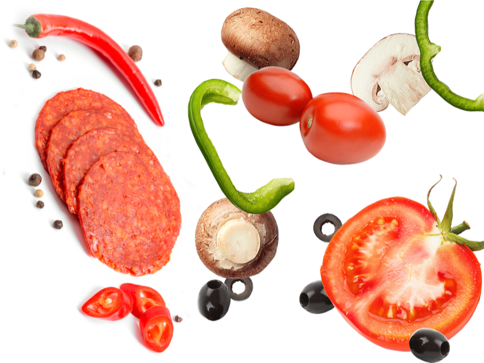 Pepperoni, Mushroom, Green Pepper, Onion.
